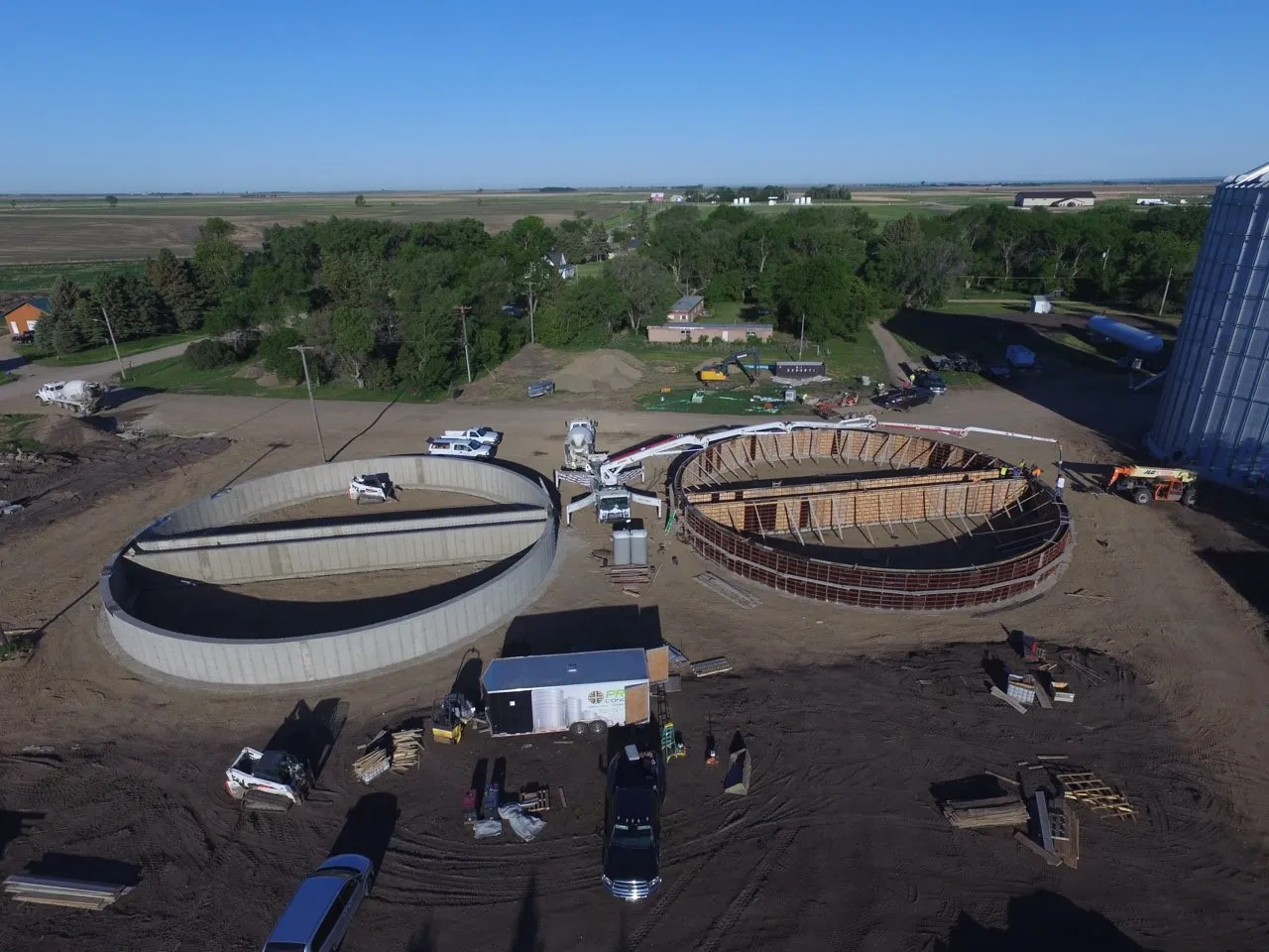 We were able to get some pretty cool aerial photos of a pour we did with Prein Concrete at the Farmers Elevator in Frederick. It's pretty amazing how much reach our pump trucks have!